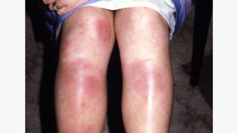 - Painful, blown joints, especially in the knees or ankles